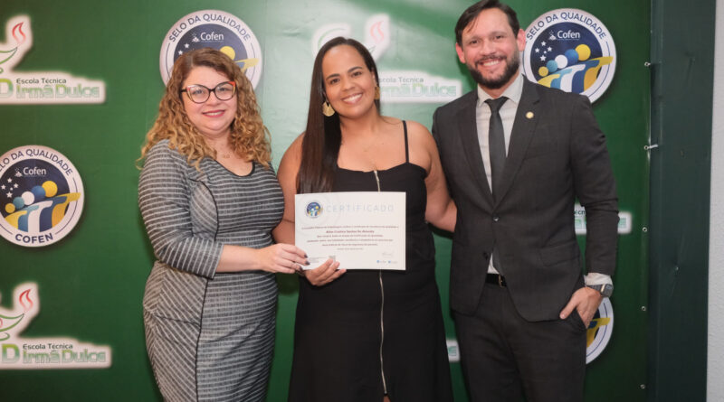 O Conselho Federal de Enfermagem (Cofen) concedeu, nesta quarta-feira (22/10), em Recife (PE), o Selo de Certificação da Qualidade à Escola Técnica Irmã Dulce, em reconhecimento à excelência no ensino técnico em Enfermagem. A instituição obteve destaque na avaliação conduzida pelo Comitê Técnico de Certificação da Qualidade, alcançando alto índice de conformidade nos critérios exigidos pelo programa.