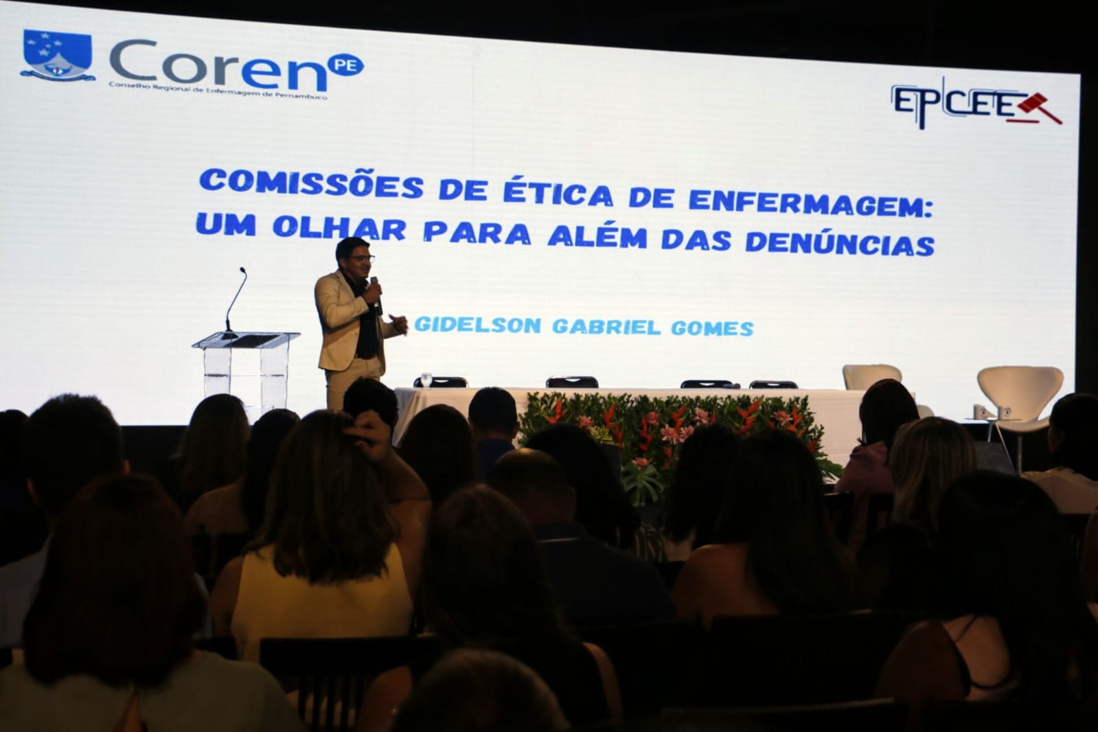 A programação também incluiu a palestra de Gabriel Gomes, que abordou a importância de um olhar que vai além das denúncias. Em seguida, Lucas Milano, integrante do corpo jurídico do Coren-PE, apresentou as normativas das resoluções do Cofen. E para encerrar a sessão de apresentações, Lucieno Santos tratou da atuação do defensor dativo diante das denúncias encaminhadas pelas comissões de ética.
